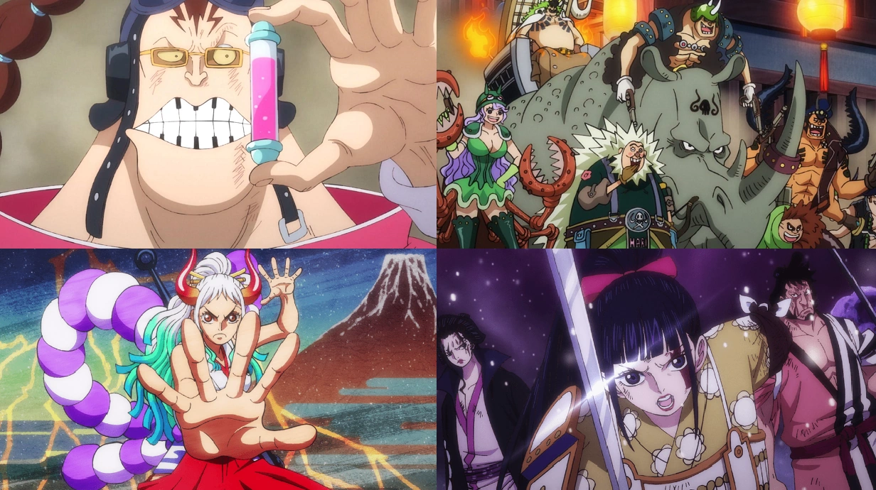 Oomasa, infettato dall'epidemia Orchi di ghiaccio, tenta di suicidarsi per non diventare un problema per i suoi alleati, ma viene fermato da Hyogoro, che gli promette una cura o una morte rapida quando sarà troppo tardi. Chopper pensa sia irrealistico sviluppare un antidoto e iniettarlo a tutti sul campo di battaglia, facendo notare però che il creatore del virus deve averlo con sé. Infatti Queen, confermando che chi viene infettato muore entro un'ora, lancia l'unica dose di antidoto esistente ad Apoo, il quale stava cercando di fuggire, e gli ordina di non lasciarlo prendere a nessuno altrimenti lo condannerà a morte, dando inizio a un nuovo gioco al massacro per entrambe le fazioni.