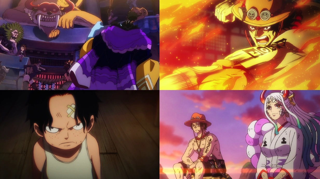 - viene mostrato l'arrivo della ciurma di Ace ad Onigashima, oltre a quando i membri liberarono i bambini rapiti;