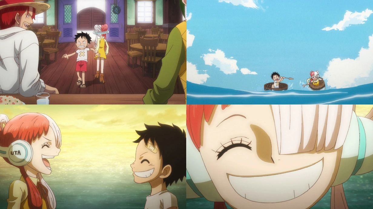 Mentre si sfidavano in mare remando su delle botti, i due bambini si imbatterono nel Padrone della scogliera e furono costretti a trovare riparo su una scogliera, dove Uta rivelò il suo sogno di creare una nuova era con le sue canzoni, mentre Rufy ribadì il suo desiderio di viaggiare.