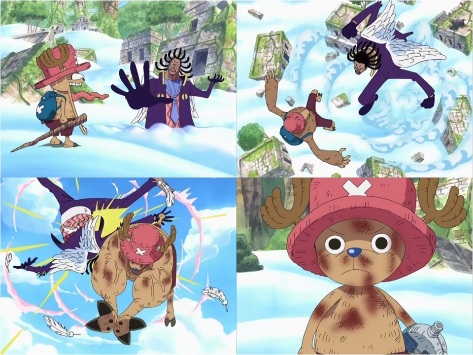Dopo un furioso scontro, Chopper riesce a battere Gedatsu e a superare la prova della palude. Il sacerdote finisce inghiottito dalla palude e precipita nel mare blu.