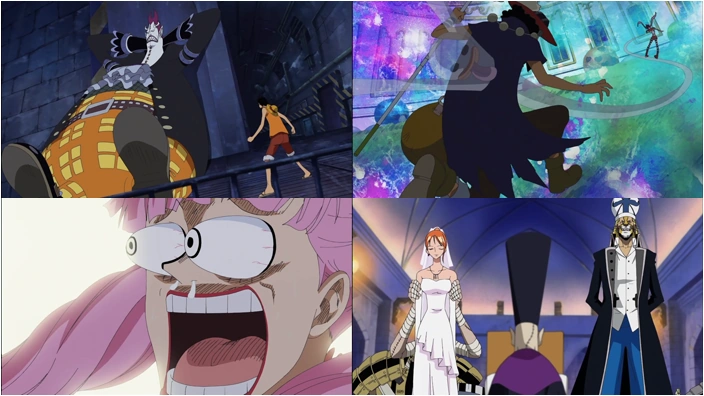 Zoro, Sanji, Usop e Franky credono che Odr voglia attaccarli, ma in realtà lo zombie gigante non bada a loro e si allontana. I pirati proseguono e raggiungono le stanze di Perona; la ragazza decide di attaccarli utilizzando il frutto Horo Horo con cui genera dei fantasmi che attraversano i loro corpi. Immediatamente tutti e quattro ne subiscono l'effetto ed iniziano a deprimersi, così Perona ordina agli wild zombie di catturarli.