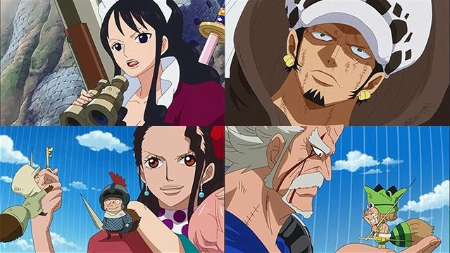 Il gruppo di alleati di Rufy approfitta del fatto che Pica abbia smesso di scagliare i suoi potentissimi pugni per proseguire l'avanzata. Anche Kyros si sta muovendo verso il palazzo reale, mentre la Marina si sta schierando in difesa di esso. Senor Pink è l'unico ufficiale della ciurma di Do Flamingo a non trovarsi con gli altri, perché ha raggiunto Franky per impedirgli di distruggere la fabbrica di Smile.