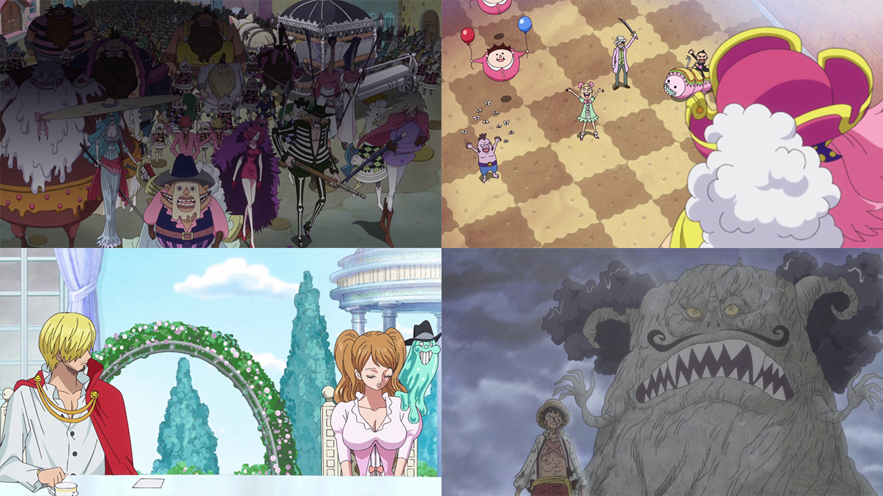 Dopo avere saputo della sconfitta di Cracker, Big Mom crea una tempesta avvalendosi di Zeus e Prometheus ed invia un'enorme armata per sconfiggere Rufy e vendicare così il figlio. LinLin raggiunge poi la famiglia Vinsmoke. In questa occasione Pudding dà un biglietto a Sanji in cui le dice che deve parlargli in provato più tardi.