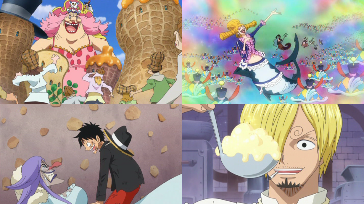 Nel frattempo, Praline usa il suo canto per impedire alle lumache di mare territoriali di inviare ai Pirati di Big Mom la posizione dei nemici. Grazie a ciò, i Pirati Firetank e i Pirati di Cappello di paglia proseguono indisturbati verso Cacao.