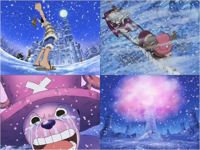 Kureha si prepara a dare un saluto speciale al suo allievo: ordina che tutti i cannoni facciano fuoco verso l'alto dopo averli caricati con la polvere creata da Hillk. L'effetto ottenuto è quello di fare assomigliare la montagna e la neve ad un ciliegio in fiore e chiunque ammira il risultato rimane senza parole per lo stupore.