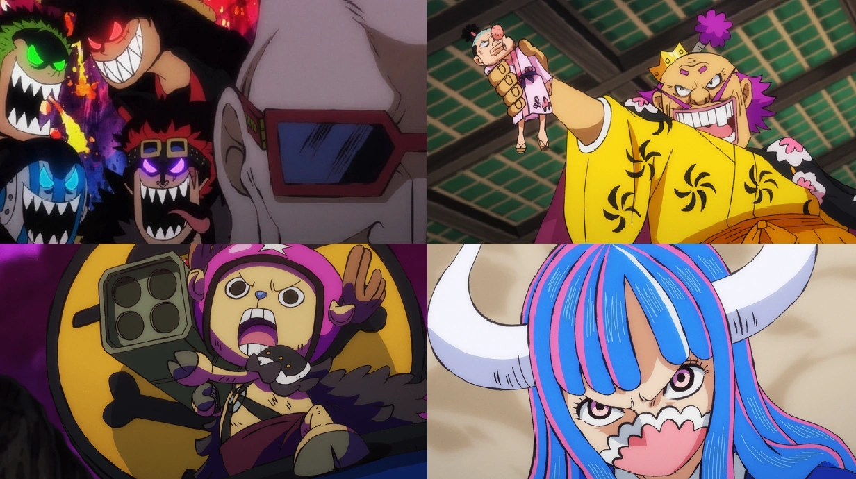 - alcuni dei Pirati delle cento bestie aiutano Big Mom nel tentativo di uccidere Chopper e Usop, ricorrendo a missili, mortai e grandi cannoni, ma i due li sconfiggono. L'imperatrice si scaglia dall'alto lanciando un missile che tiene in mano contro il Brachiotank 5. I due pirati all'interno la colpiscono poi con una cannonata al viso da distanza ravvicinata e subito dopo la renna le lancia un missile in bocca, che esplode. Tuttavia Big Mom si rialza indenne e continua l'inseguimento;