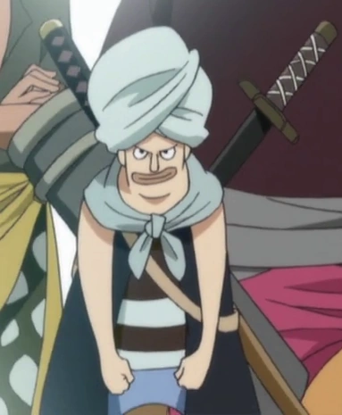 In quel momento, dal mare apparve un uomo-pesce che teneva in mano il Jolly Roger dei Pirati di picche, preso dalla nave, che poi gettò via, facendo infuriare la ciurma. Wallace, tremante di paura, lo riconobbe: era Jinbe. Dopo uno scambio verbale, Ace e il membro della Flotta dei sette cominciarono a combattere.