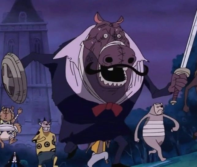 Lui e altri wild zombie vengono informati dai fratelli Risky della presenza di tre pirati nel Wonder Garden, così li raggiungono. Dopo che i primi due sono stati colpiti, attacca Nami, ma Inuppe lo colpisce spezzandogli anche la spada, facendolo stramazzare a terra.