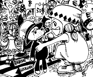 | Vittime di furto d'ombra: | Brook • Eccoilsole • Charlotte Laura • Guh • Margarita • Monkey D. Rufy • Nico Robin • Risky • Roronoa Zoro • Spoil • Vinsmoke Sanji |