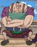 Assiste all'arrivo sulla Moby Dick di Rockstar, il quale consegna una lettera di Shanks a Barbabianca. Tuttavia quest'ultimo la strappa senza nemmeno leggerla immaginando che il contenuto riguardasse Ace e Barbanera, affermando che se il Rosso deve dirgli qualcosa, lo dovrà fare di persona e accompagnato da un alcolico. Sente poi l'imperatore dire a Rockstar di togliersi dai piedi.