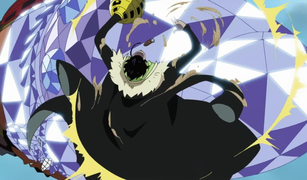 Questo frutto del diavolo è molto utile sia in fase offensiva che in fase difensiva. La sua forza, già immensa, viene potenziata dalla durezza del diamante, e la sua resistenza sembra aumentare vertiginosamente, tanto da riuscire a fermare il fendente generato da Drakul Mihawk.