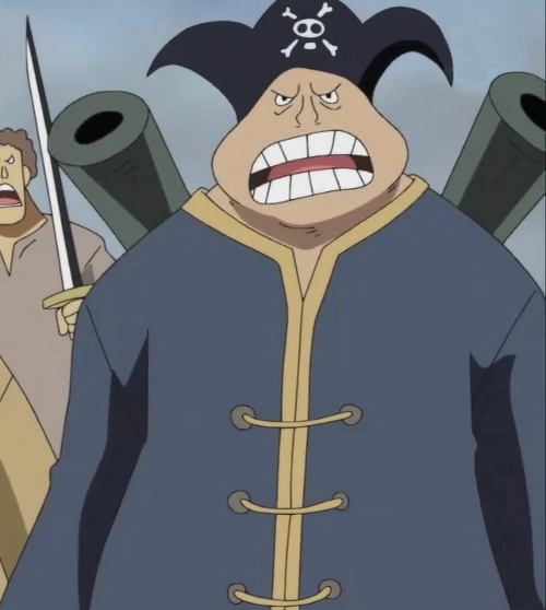 Nell'anime, non ha i baffi e il Jolly Roger sul suo tricorno è diverso.