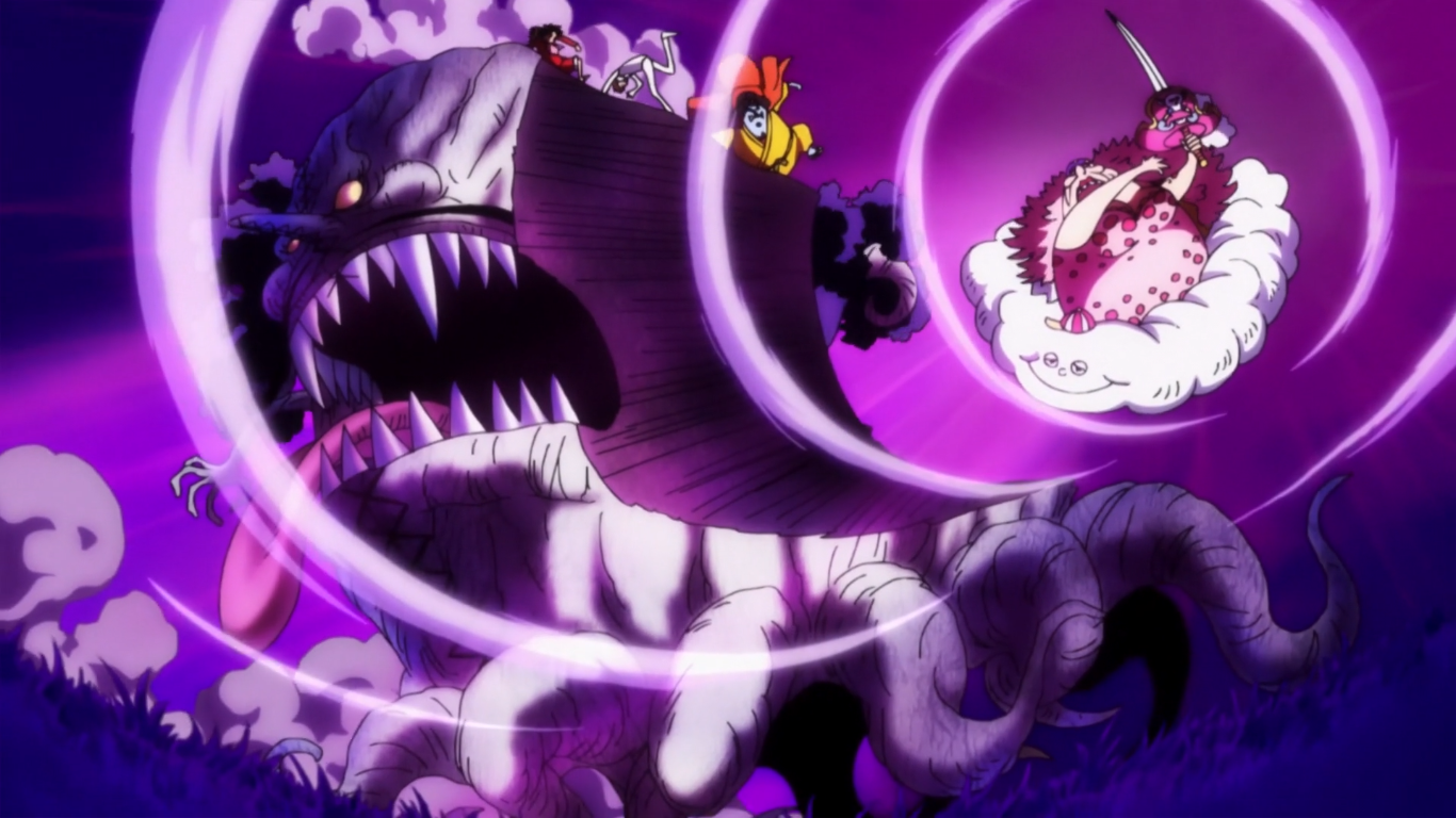 Nell'anime, Nami costringe King Baum a salvare Rufy e ordina ad altri homeys di portarlo nella bocca del signore della foresta della seduzione, ma vengono circondati da Cracker e i soldati biscotto. Viene mostrata la scena in cui il generale dei dolci taglia la sua chioma con un fendente della sua spada.