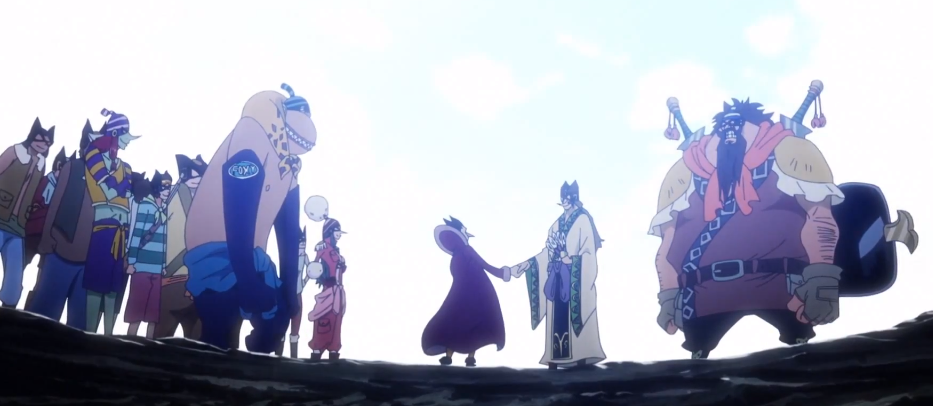 Nami attacca Komei con un fulmine, ma il marine lo respinge al mittente colpendo sia lei che Foxy e sconfiggendoli. Mentre Komei si prepara a trasportare tutti i prigionieri al quartier generale della Marina il geyser erutta e da esso emerge un gigantesco serpente proveniente dall'altra isola che trasporta Chopper, Brook e il resto dei Pirati di Foxy. Komei rimane incredulo nel constatare che i pirati riescono a sconfiggere i suoi uomini e a liberare i loro compagni, oltre a restituire a Sanji e a Zoro la loro forza di volontà. La scoperta peggiore è che Rufy è ancora vivo, perché il proiettile sparato da Kansho ha colpito la spilla che il pirata aveva addosso, fermandosi.