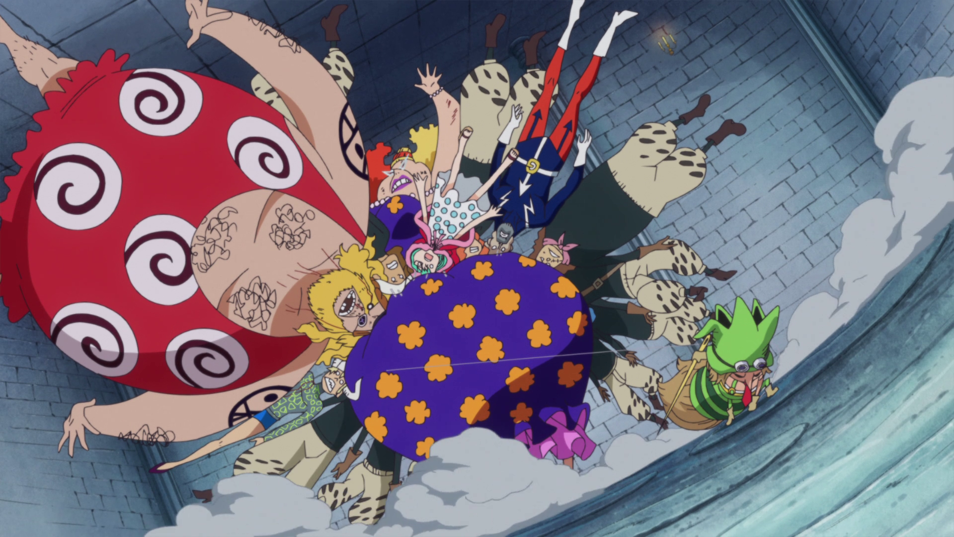 | Prigionieri: | An Zengaiina • Bellett • Bentham • Buffalo • Dellinger • Diamante • Dobby Ibadonbo • Doha Ittanka II • Donquijote Do Flamingo • George Black • Gladius • Jean Goen • Jora • Kairo Kureyo • Lao G • Machvise • Olive • Pankuta Dakeyan • Pica • Roche Tomson • Senor Pink • Shuzo • Sugar • Trebol