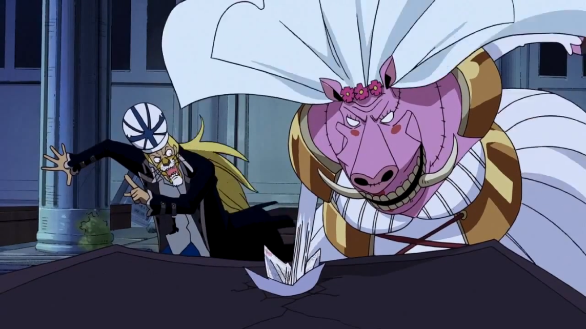| Vittime di furto d'ombra: | Brook • Eccoilsole • Charlotte Laura • Guh • Margarita • Monkey D. Rufy • Nico Robin • Risky • Roronoa Zoro • Spoil • Vinsmoke Sanji |