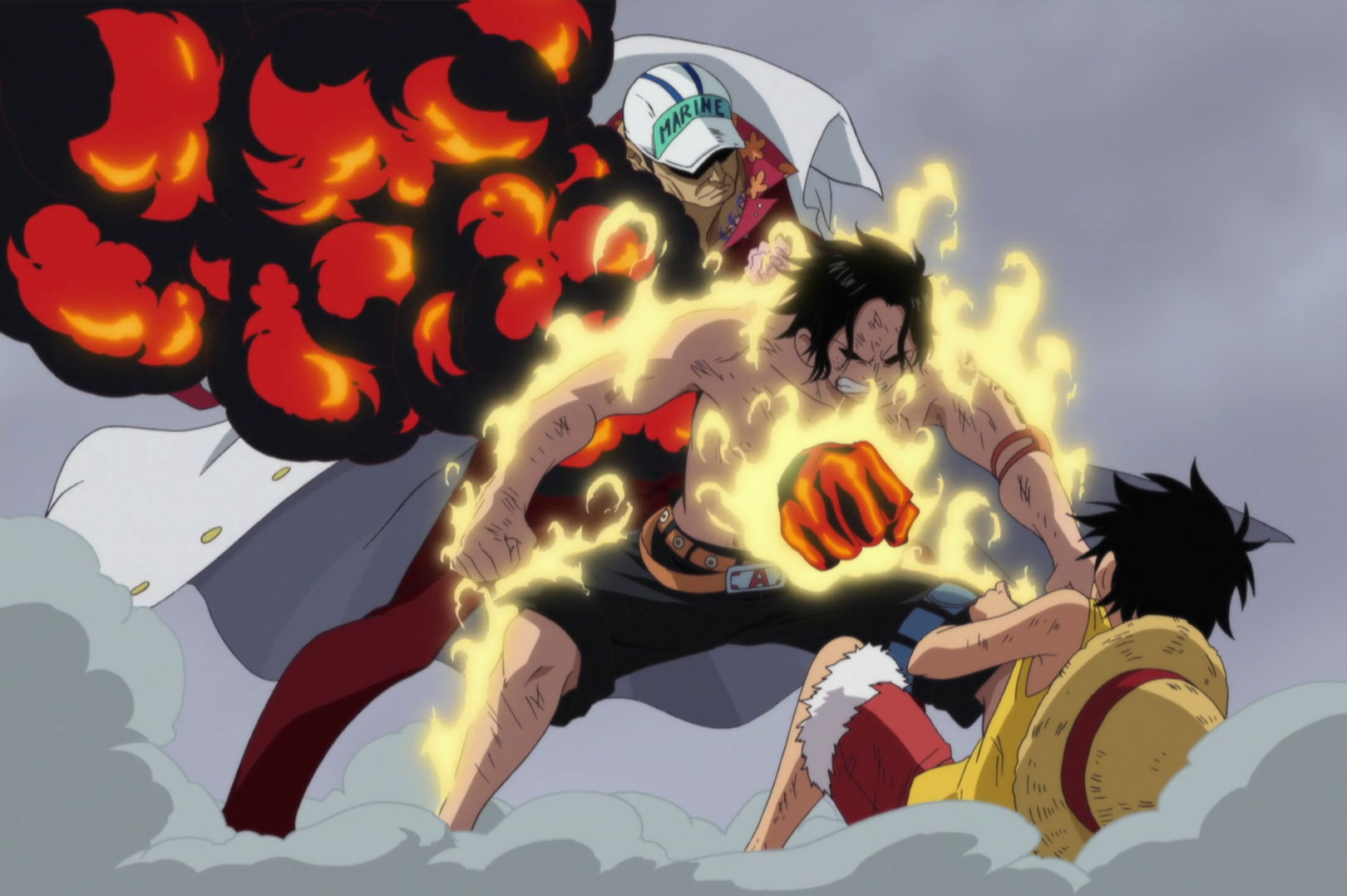 - ↑ 7,0 7,1 Vol. 58, capitolo 573 ed episodio 482, Sakazuki colpisce mortalmente Ace.