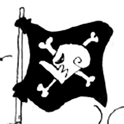 Il loro Jolly Roger è costituito da un teschio disegnato di profilo con un'aria molto seria che ricorda la mascella del capitano, posto sopra alle classiche ossa incrociate.