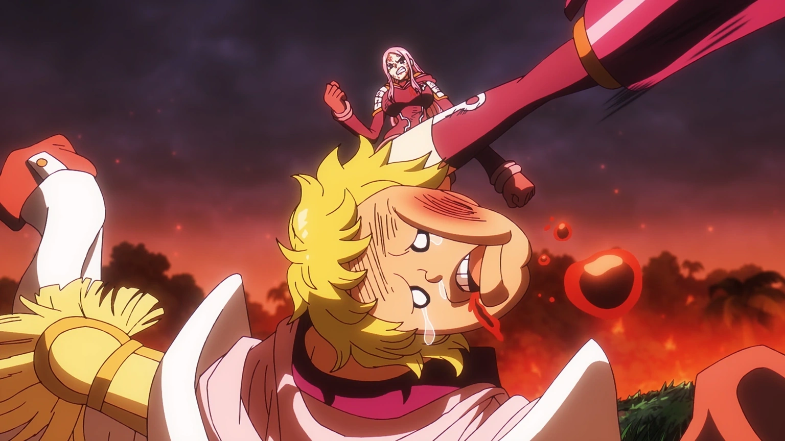 Viene aggiunta la sua reazione all'arrivo degli astri di saggezza.[6] In seguito, Bonney lo colpisce ripetutamente dopo averlo trasformato in un bambino. Lui, Red King e Guillotine si rialzano dopo i colpi subiti, ma poi vengono definitivamente sconfitti.[7]