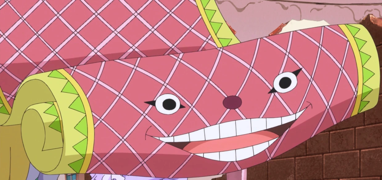 Dopo che Pudding e Chiffon hanno convinto Sanji a preparare una torta per Big Mom, l'homey evita un attacco della donna e si allontana anche con il pirata. Pudding gli ordina però di tornare indietro in modo che possa fare tornare agli homeys della foresta i ricordi dei frammenti delle anime che ospitano, in modo che smettano di confondere i fuggitivi. Poi si dirige verso Cacao.