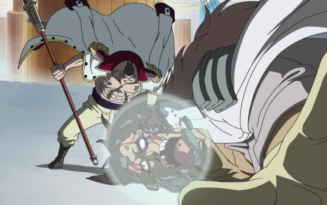 Dopo la sconfitta di Little Odr Junior da parte di Orso Bartholomew e Gekko Moria, cerca di attaccare a sorpresa Barbabianca, ma viene messo al tappeto da un singolo pugno del pirata.