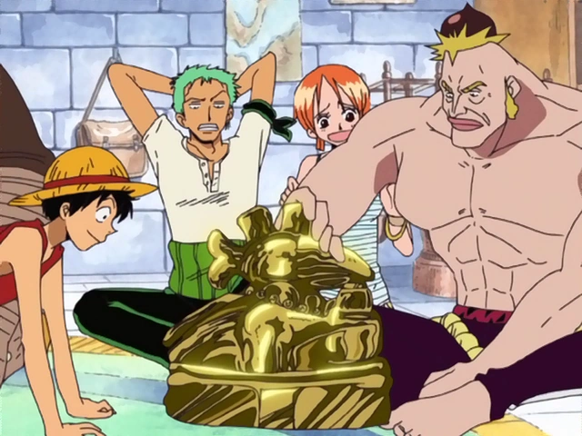 Cricket parla alla ciurma di Rufy della città d'oro.