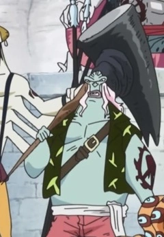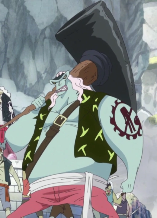 Si trova all'interno dell'arca Noah in compagnia di Hody Jones e degli altri ufficiali quando il gruppo commenta la fuga di Gyro e della sua ciurma, prima che Hody vada personalmente a punirli. Riappare in seguito, sempre dentro la gigantesca arca, quando il suo capitano e Van Der Decken IX stringono un'alleanza. Dopodiché le due ciurme pirata partono alla conquista dell'isola degli uomini-pesce, dirigendosi verso i vari quartieri che compongono il regno.