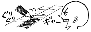 L: È da cinque anni che cerco di pensare ad un argomento appropriato e quell'argomento è "perché nei manga d'azione, la parte inferiore dei vestiti non si rovina mai!?"