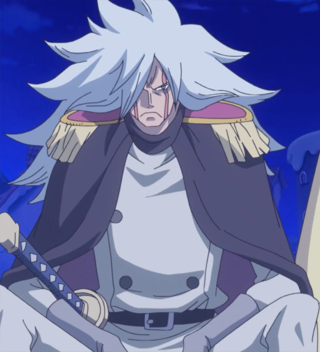 Gdy pojawił się po raz pierwszy w anime, wyglądał zupełnie inaczej. Miał blond włosy i jasnofioletowy zapinany na guziki płaszcz, białe spodnie, brązowe buty i różową pelerynę. Nie miał epoletów i był niższy. Zamiast pasa, miał szarfę.