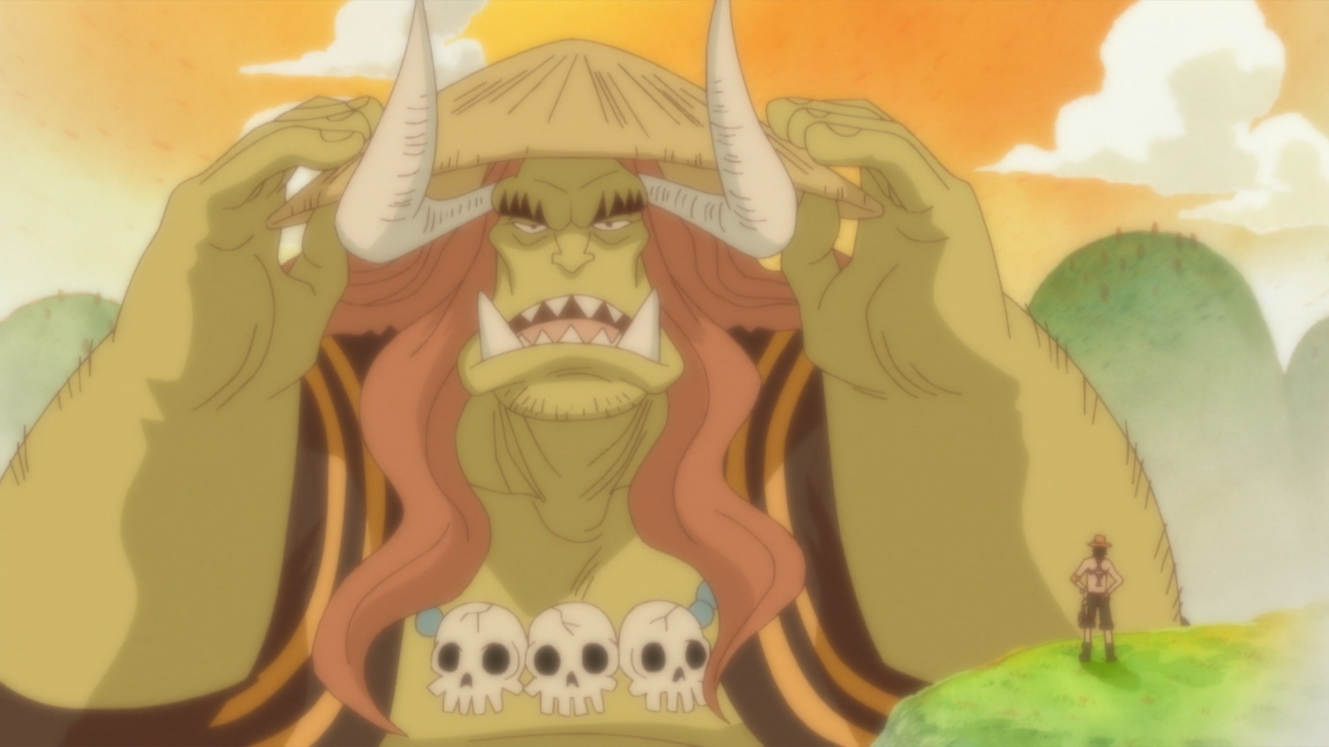 Podczas wspomnień dowiadujemy się, jak Little Oars zaprzyjaźnił się z Acem. Ace zrobił dla Oarsa tradycyjny kapelusz ze słomy, którego zrobienie zajęło mu mnóstwo czasu ze względu na zdolność swojego owocu. Kapelusz ten chronił go zarówno przed słońcem jak i przed deszczem. Olbrym stwierdził, że ten kapelusz jest znakomity i nie ma po co chować się przed deszczem póki ma go na sobie.