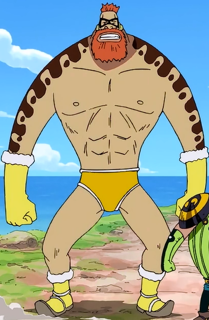 Różnica rozmiarów Big Pana (rybotana), Picklesa i Hamburga, z Zoro i Sanjim, ludźmi przeciętnego wzrostu.