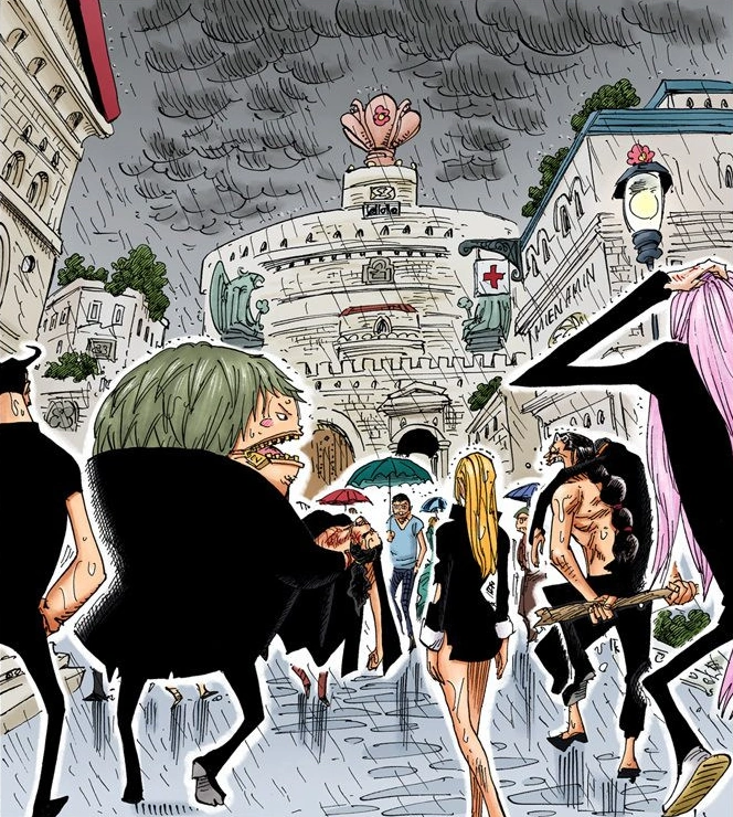 Po upadku Enies Lobby do miasta trafili agenci CP9, którzy pracowali tam, by zarobić na leczenie Roba Lucciego po obrażeniach, które odniósł w walce z Luffym. Po wyzdrowieniu Lucciego, obronili miasto przed załogą Cukierkowych. Musieli jednak opuścić mieścinę, gdyż brutalność Lucciego wobec pirackiego kapitana przeraziła mieszkańców.