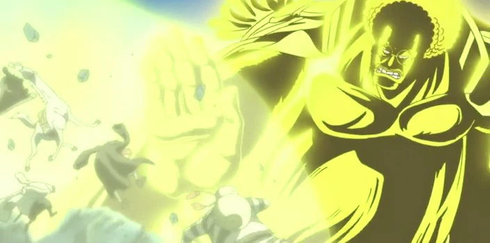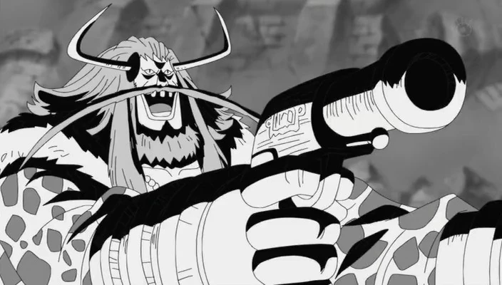 atacando com uma pistola, assim como a maioria dos membros de sua equipe (com exceção de Wolf). Após a morte do Barba Branca, ele ajuda a colocar o pano preto misterioso sobre o cadáver de Barba Branca, então Barba Negra vai para debaixo do pano. Ele é mostrado olhando rindo quando Barba Negra começa a demonstrar seu novo poder. Depois, ele e os outros piratas do Barba Negra são atacados por Sengoku em sua forma de Buda e arremessados para longe. Mais tarde, ele sai com a tripulação quando Shanks o Ruivo chega em Marineford.