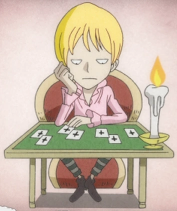 - ↑ One Piece Anime — Episódio 603, Os cartões de Hawkins são mantidos por astes.