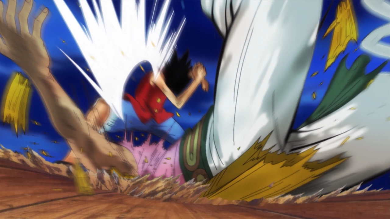 Luffy derrota Bellamy com um golpe novamente.