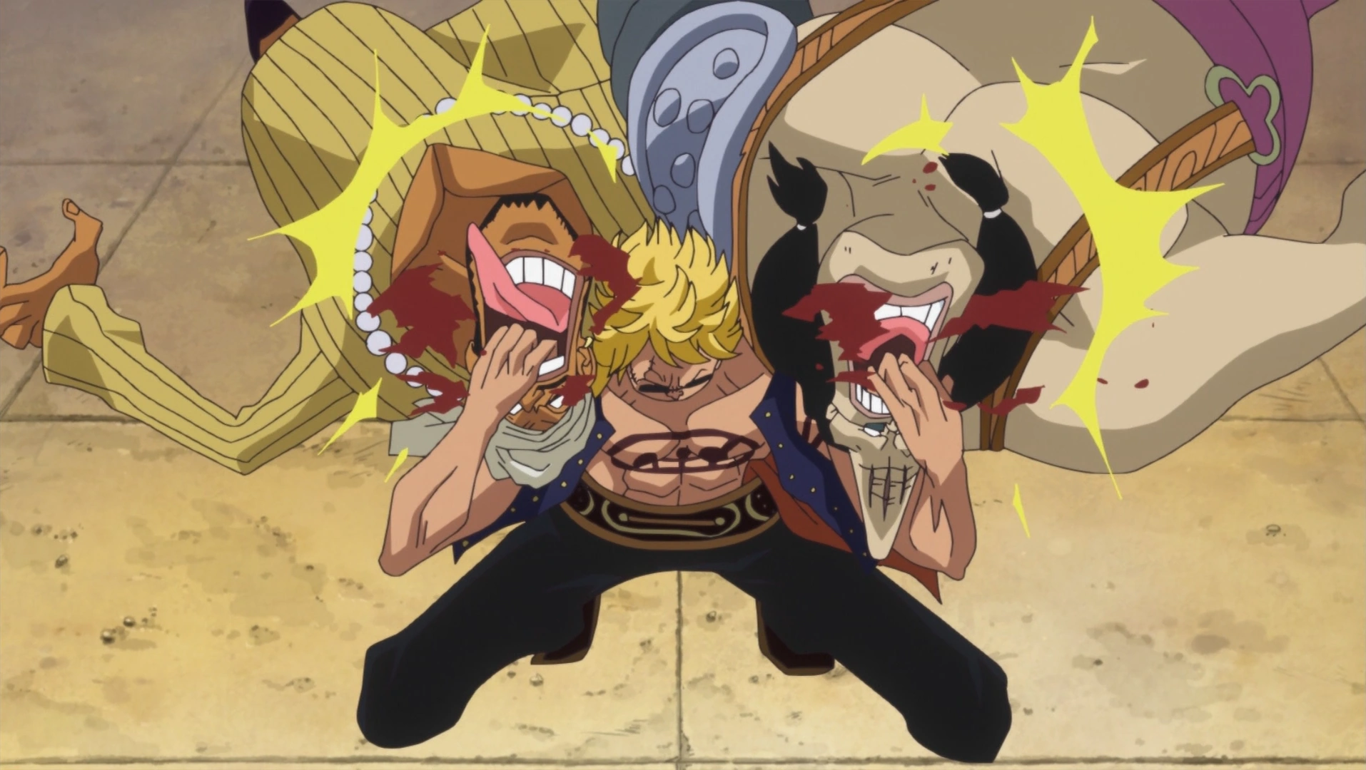 Bellamy brutalizado por Doflamingo