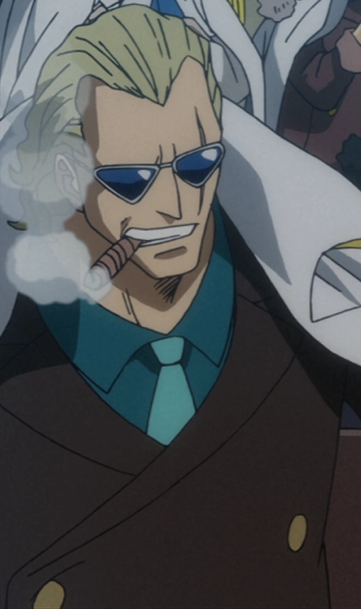 - ↑ One Piece Movie — One Piece Filme: Z, Cancer participa de uma reunião sobre Zephyr.