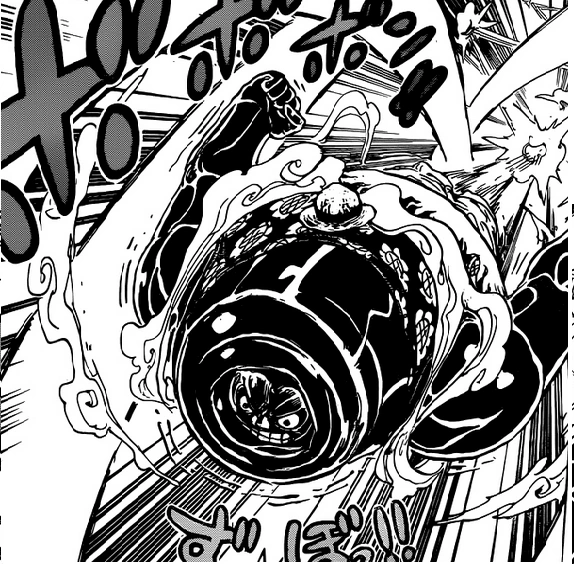 - Luffy tenta terminar sua batalha contra Doflamingo com Gomu Gomu no Bazooka Leo.