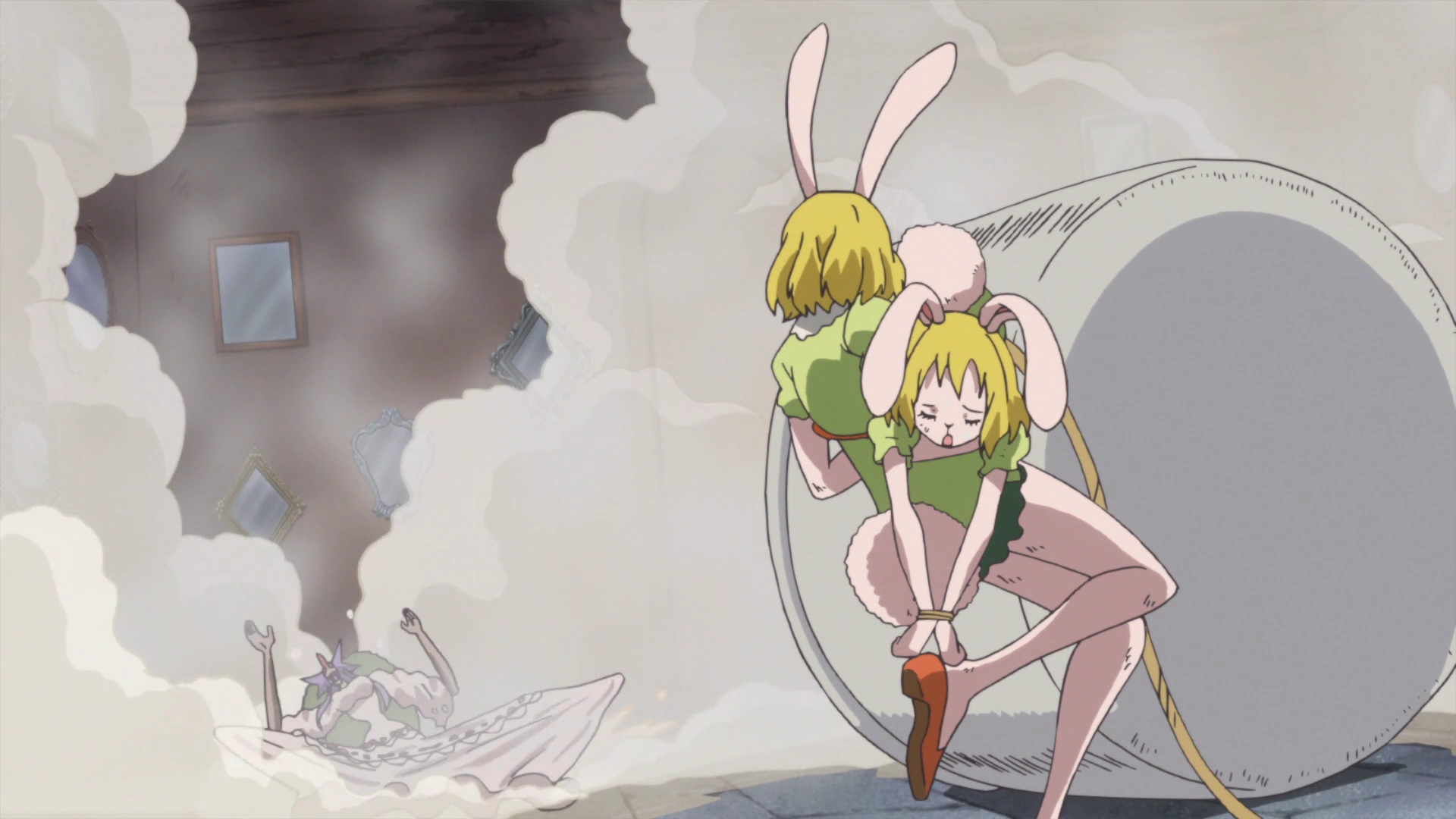 Carrot e Wanda levam Luffy para a Fortaleza da Barriga Direita.