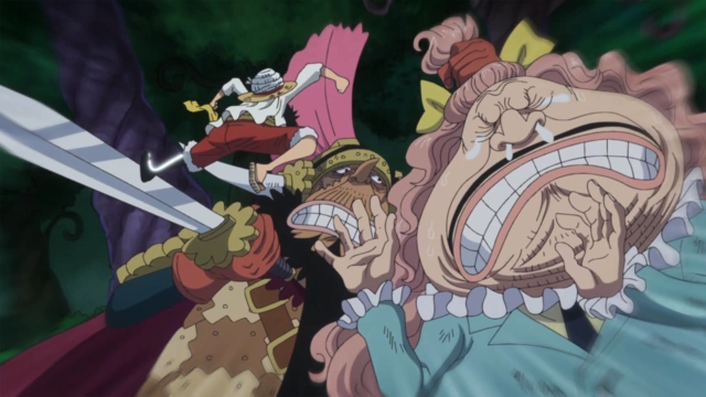 O ataque de Cracker em Pound é interceptado por Luffy.