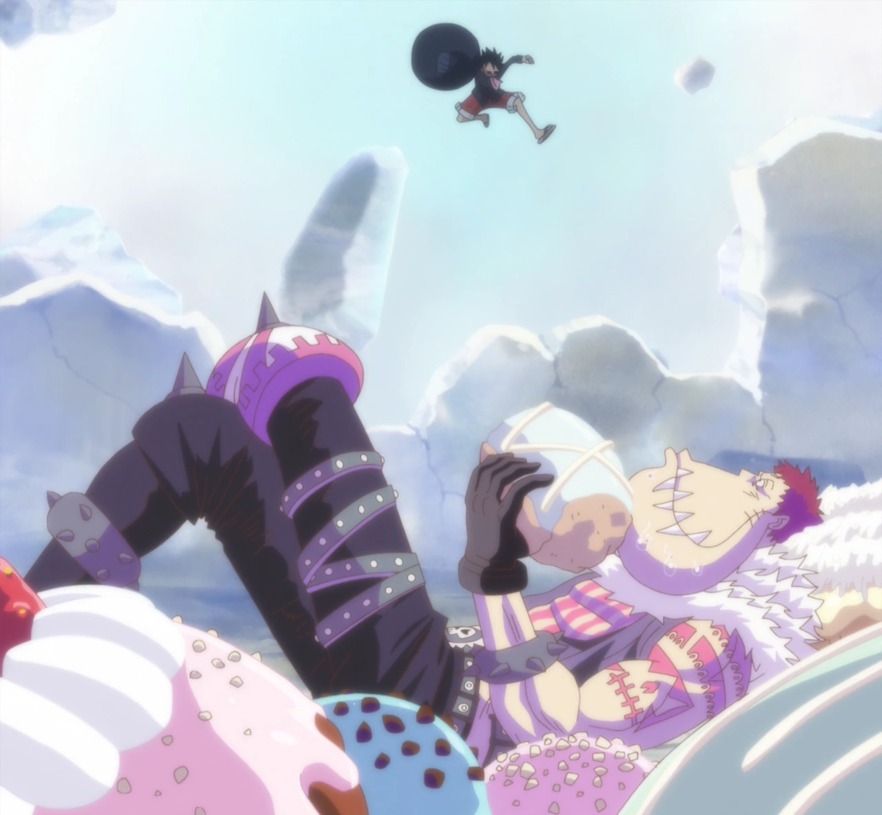 Ao saber da derrota de Katakuri para Luffy, a tripulação estacionada fora do Mundo dos Espelhos ficou furiosa e tentou matar Luffy em vingança, acusando-o incorretamente de usar métodos desleais para vencer.