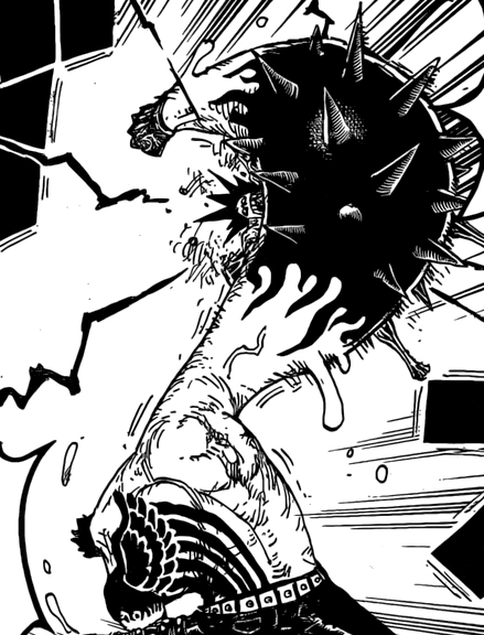 | — Katakuri demonstrando sua raiva para com sua irmã Charlotte Flampe por interferir em sua luta com Luffy.[25] |