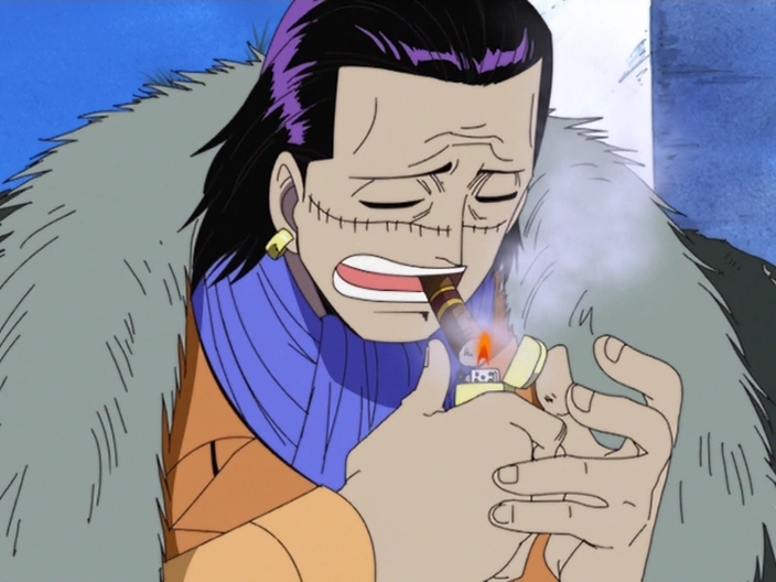 - ↑ One Piece Anime — Episódio 117, Crocodile is erroneously seen lighting his cigar with both hands.