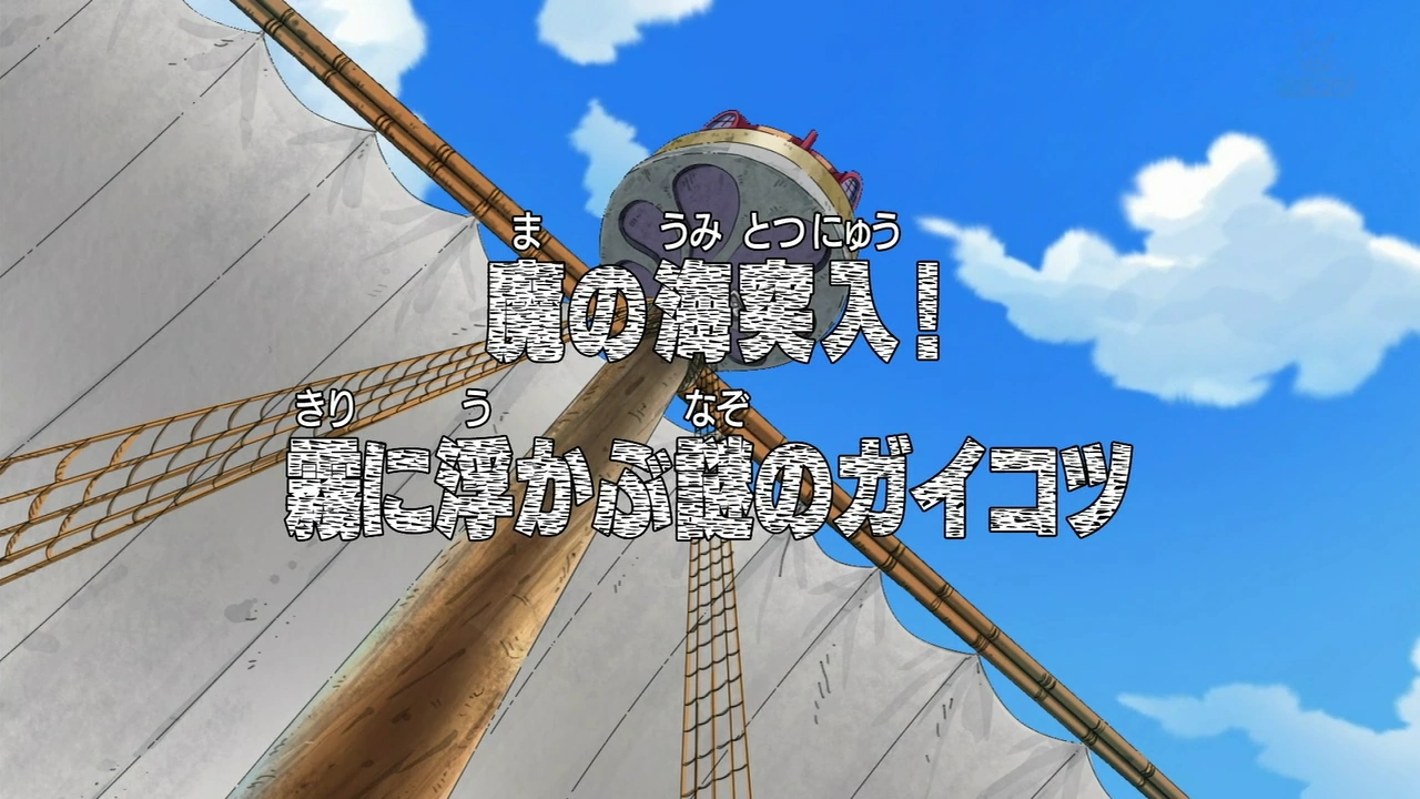 | Na procura por comida os chapéus de palha caçam um polvo e logo após encontram um estranho barril. Depois da abertura do barril o Thousand Sunny é jogado dentro da névoa triângulo de Florian e logo se deparam com um navio em ruínas. Luffy, Sanji e Nami vão explorar o navio. Lá eles encontram um esqueleto vivo chamado Brook, Luffy pede imediatamente que ele se junte a tripulação. |