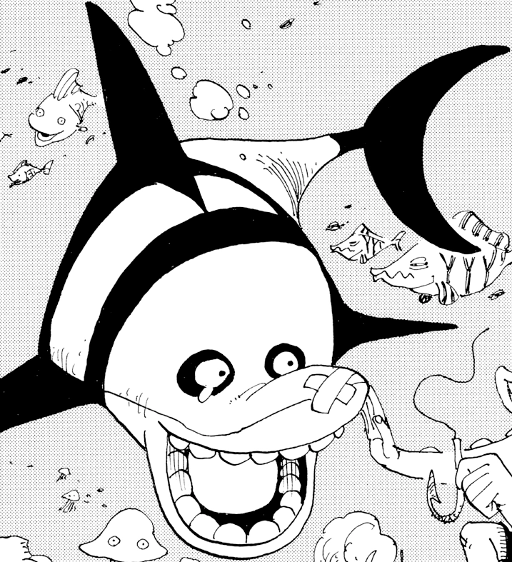 Por outro lado, no Passeio Submarino com Hatchan indica que essas criaturas são mais conscienciosas - e mais inteligentes em geral - do que os tubarões comuns. Depois que Hatchan salva um de um anzol perdido, ele agradecidamente dá a Hatchan um pedaço de carne de sua própria toca (mostrado contendo uma geladeira funcionando, uma lâmpada funcionando e até mesmo um calendário pinup).[9] Seu aniversário é 29 de agosto.[10]