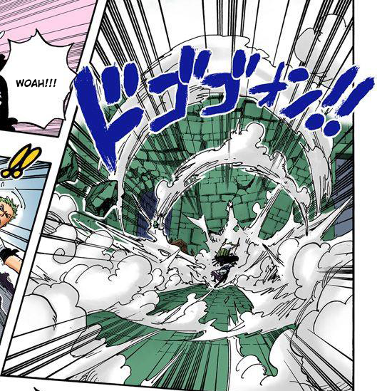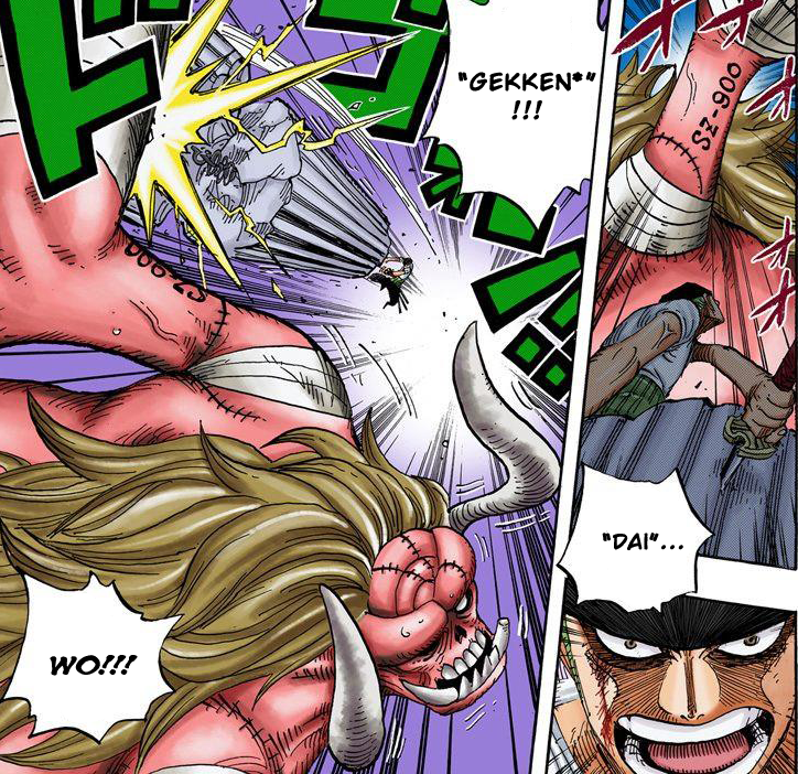 - ↑ One Piece Mangá e Anime — Vol. 49 Capítulo 472 (p. 11) e Episódio 367, Zoro usa Dai Gekken contra Oars.