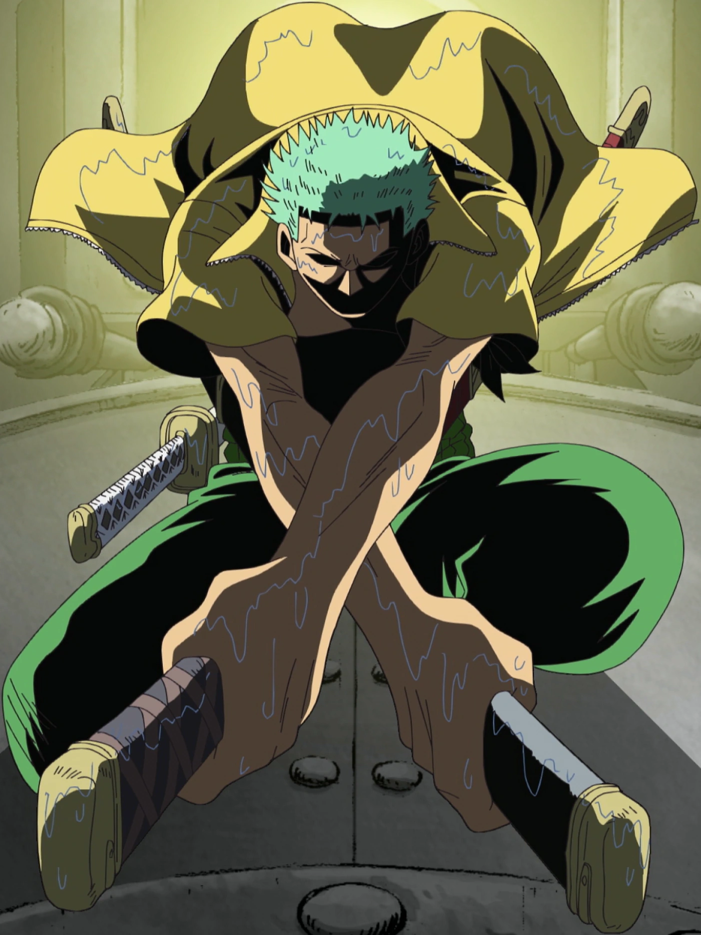 - Nigiri: Toro Samon (弐斬り 登楼砂紋, Nigiri: Tōrō Samon?, literalmente significa "Corte Duplo: Desenho da Areia da Torre de Escalada"): Uma combinação de três ex-técnicas: Nigiri, Toro e Samon. Zoro deixa duas espadas para trás, em seguida gira todo o corpo com velocidade disparando um corte duplo de longa distância. Isto foi visto primeiro usado contra Basil Hawkins.[8]
