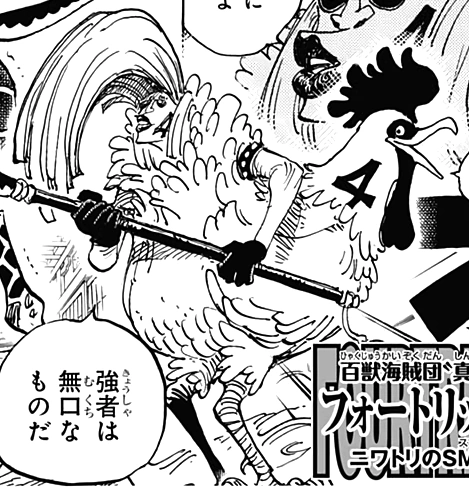 - ↑ 1,0 1,1 1,2 1,3 1,4 1,5 1,6 1,7 1,8 One Piece Mangá e Anime — Vol. 98 Capítulo 994 (p. 7-8) e Episódio 1006, Fourtricks faz sua estreia.