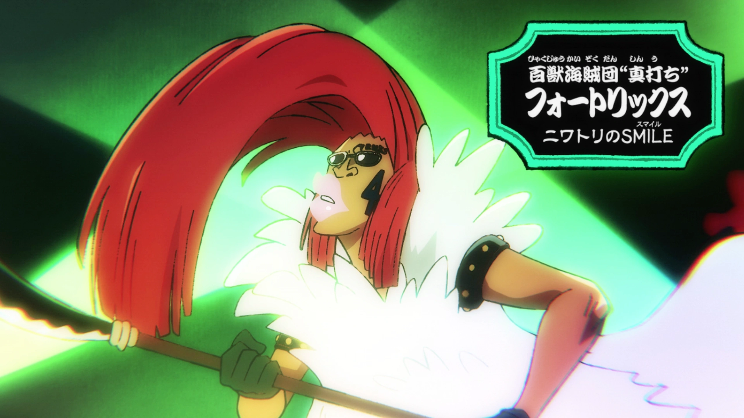 No anime, Fourtricks é mostrado participando das festividades do Queen's Golden Kagura ao lado dos outros Shinuchi.[2] Sua estreia no mangá ocorre mais tarde.[1] ==Grandes Batalhas== *Fourtricks e Hamlet vs. Sanji e Jinbe