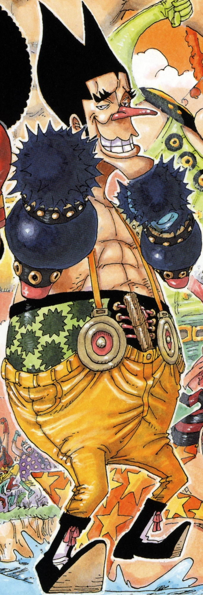 Despite his unassuming physique, Foxy served as a former champion boxer fifteen years before delving into piracy. His considerable power and boxing expertise proved to match Monkey D. Luffy's Gomu Gomu no Gatling blow-for-blow.